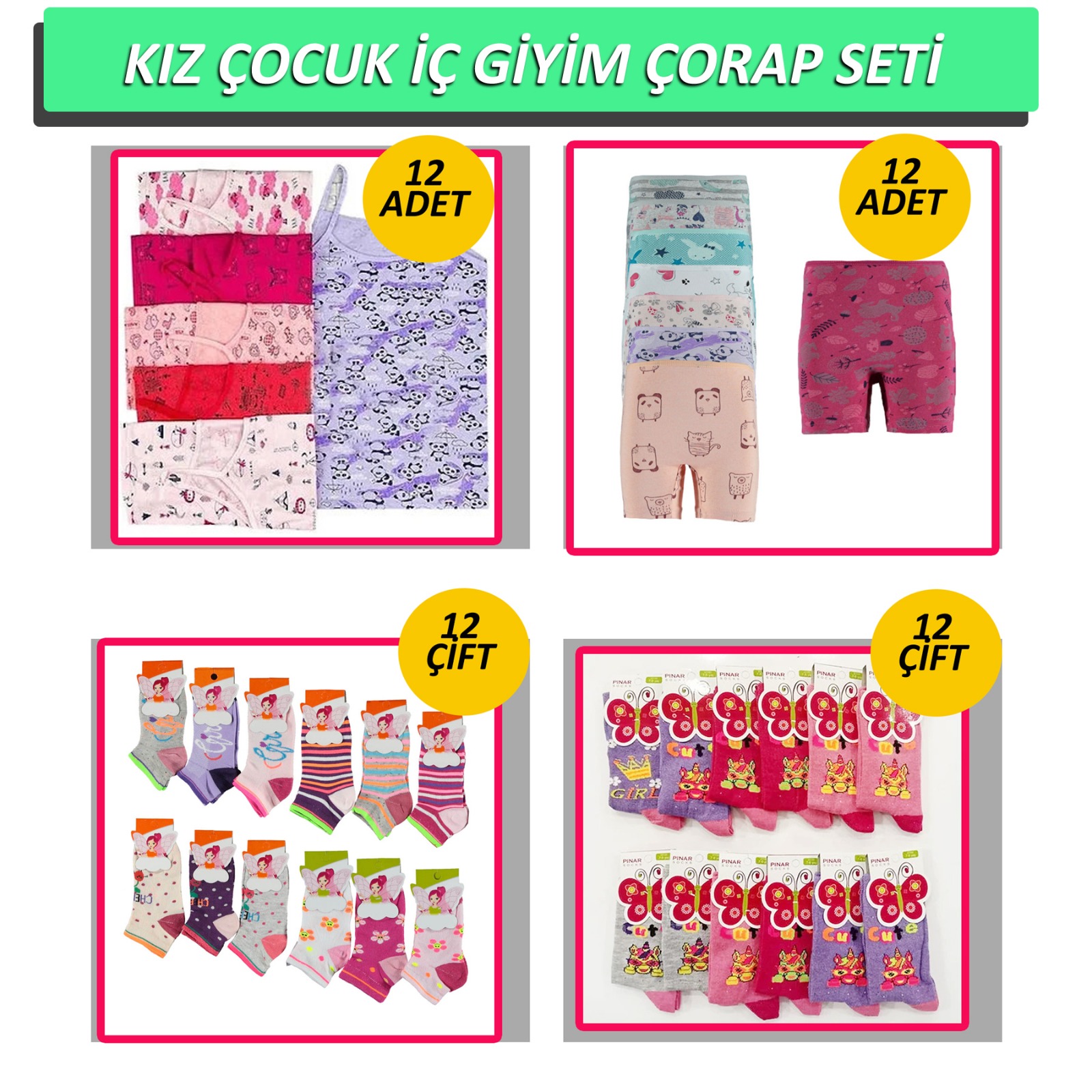 (KDV DAHİL)Toptan Kız Çocuk İç Giyim Çorap Seti (1)